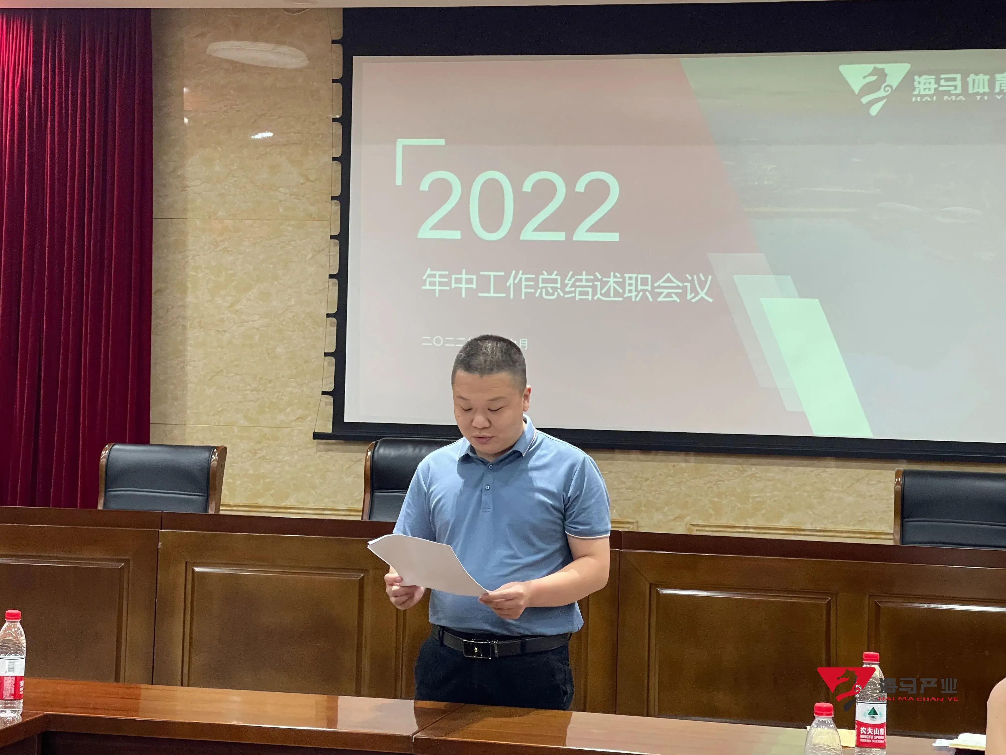 2022年6月29日下午,oety欧亿体育文化产业集团在山东省体育中心二楼会议室召开年中工作总结述职会议,会议对上半年工作成果进行了总结汇报,并就下半年重点工作进行部署。总经理王海民出席了本次会议。会议由综合管理部负责人王永健主持。